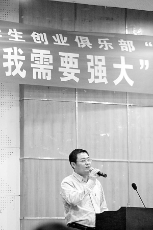 没错,4月25日13:30,在杭师大下沙校区图书馆望道厅,确实有个“讲座”,这是商报“创业板”进校园活动的第二站,主讲人叫李郁丰,身份是杭州市大学生创业俱乐部的创业导师。活动的消息传开之后,吸引了不少附近高校的大学生报名参加,望道厅能容纳200人,报名人数却大大超出200人。