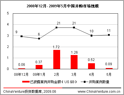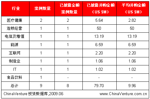 本月中国企业境内并购案例为9起,已披露金额案例数量8起,涉及金额7970万美元(见表1-1)。其中,携程出资5000万美元认购如家新发行的751.45万股普通股,持股比例增加到18.25%,成为如家第一大股东。携程和如家联手既完善了产业链,又降低了运营成本和风险。作为如家最大股东,携程将有望获得如家更多的订房保障,对于其业务拓展将产生积极效果。