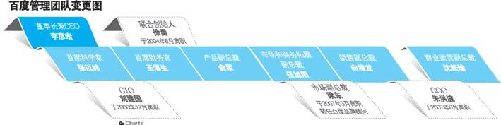 百度上市之初,已经有一些创业元老陆续离开,其中包括CTO刘建国、首席架构师周利民、大搜索部高级经理谌振宇等人。对于留下来的员工,百度也需要给出一个解释:员工的努力,与百度一年间从100美元变成400美元的股价表现,究竟在多大程度上是正向相关的?