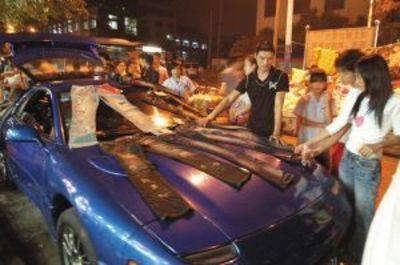 夜市一条街上,别人都是板车或铁架当摊点,却有人用豪华的跑车充当夜市摊架,居然卖的还是廉价牛仔裤。近日,有热心读者爆料,温州瓯海区梧田街道梧慈路夜市摊上惊现“史上最牛流动摊贩”,一摊主每晚用豪华跑车当夜市摊架,博得不少路人眼球,跑车摊贩生意异常火爆。