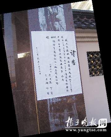 进入戴南中心镇区后,记者在当地居民的指引下,很容易就找到了包存林生前所居住地。透过镂空的围墙,记者看到院内“双子楼”特别醒目,两楼均三层高,欧式建筑,相当气派,相隔30米左右。当地人告诉记者,“双子楼”一座是其生活楼,另一座是辅楼,辅楼相当于以前大户人家的“厢房”。在院门前,围满了前来吊唁的当地居民,现场有人还在感叹:“好好的一个人,怎么说没就没了呢?”在院门北侧墙上贴着一张“讣告”,“讣告”的发布者是包存林的子女,上写道“家父包存林因病医治无效,于农历十月十三晚七点溘然长逝”。