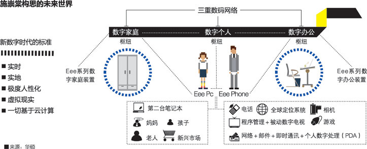 “当时我们讨论过,觉得这个想法是正确的,Eee PC也许是有机会可以建立这样一个平台”,施崇棠对《环球企业家》承认。但令人遗憾的是,这一次,华硕的执行没有跟上其战略思考。的确,有太多理由让它将此策略暂缓执行,比如Linux操作系统和电池管理系统已经占据了硬盘很大空间,比如华硕最初最希望对外强调的是产品的易于携带而非功能丰富。但归根到底,它错过了那个稍纵即逝的机会窗:就像Office之于Wintel体系下的PC、iTunes音乐商店之于iPod、App Store之于iPhone,借助软件和内容的力量为硬件产品构筑一条护城河。