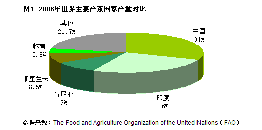 茶叶作为一种农作物,地理和自然环境对其影响很大。全球有60多个国家生产茶叶,据粮农组织统计,截至2008年世界茶叶种植面积总数大约为290万公顷,且每年以3%的速度增长。2008年世界茶叶产量为375万吨,但是产量却很集中,印度、中国、肯尼亚、斯里兰卡、越南这五个国家就占了总产量的80%左右。