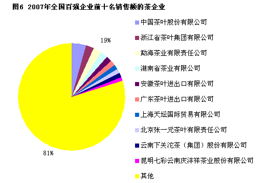 1、中国茶叶行业的行业集中度很低,中国有七万多家的茶叶生产企业,根据中国茶叶协会2008年对茶叶百强企业的统计,2007年度的全国茶叶百强企业总的销售额只占总销售额的46.2%。